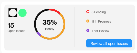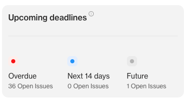 - Next 14 days (blue indicator) - Issues with a due date from today through the next 14 days.