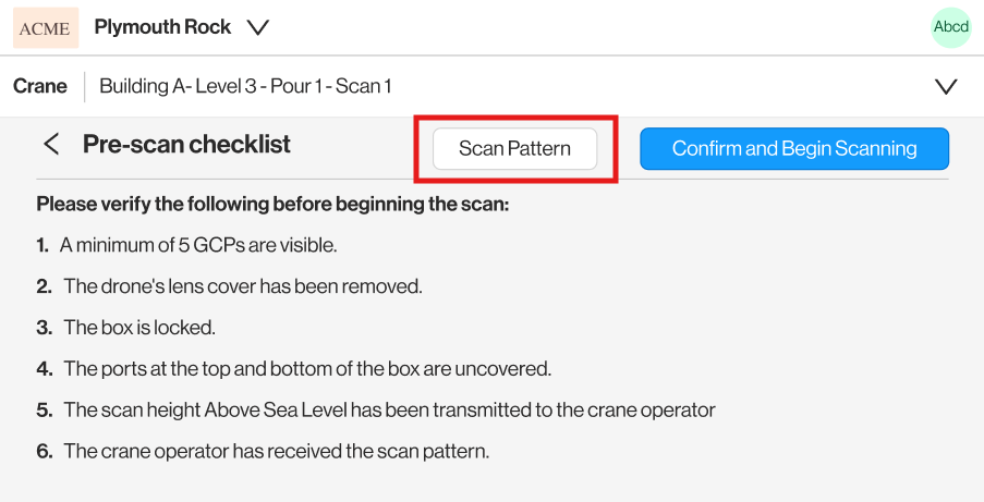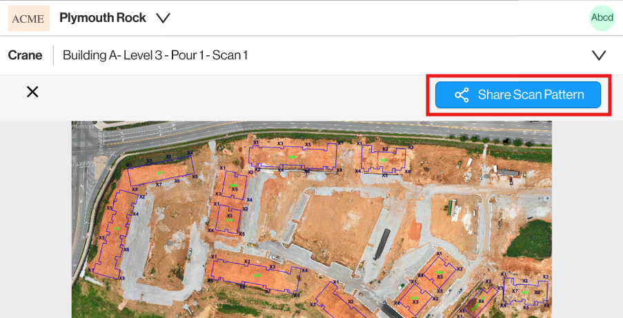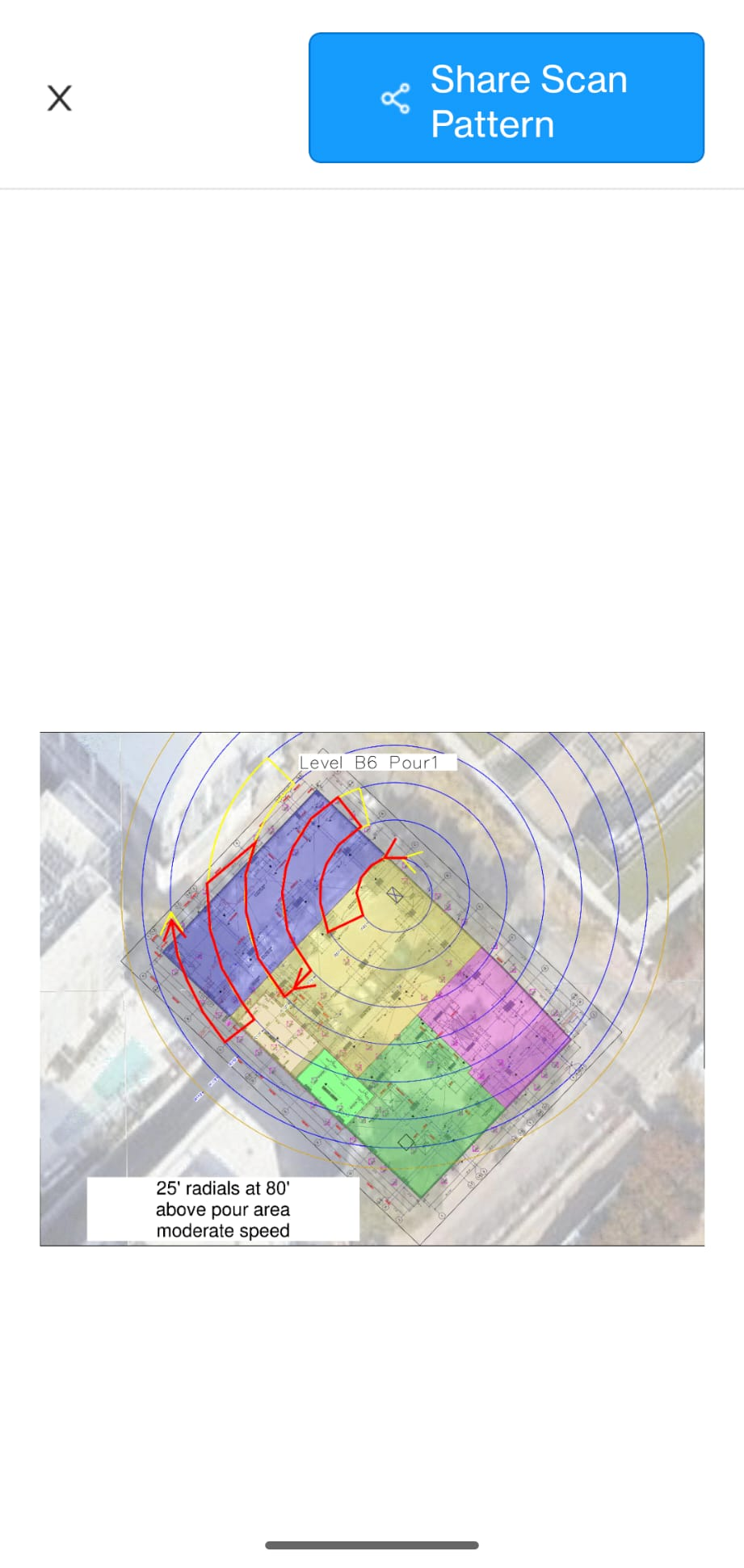 When in Crane Capture Mode on a mobile device, clicking on Step 3: View Crane Scan Pattern will allow the user to view the Crane Scan Pattern for that pour area.