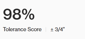 The tolerance score represents the percentage of the slab where the profile matched the provided model or reference elevation.