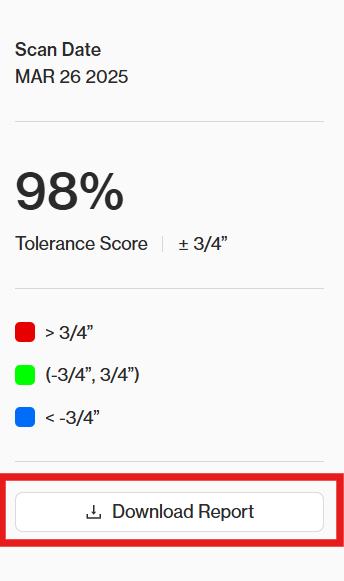 Results for the Slab Elevation Verification Report will be delivered on the next business day. The report will be accessible on the Pour Overview page as shown below: