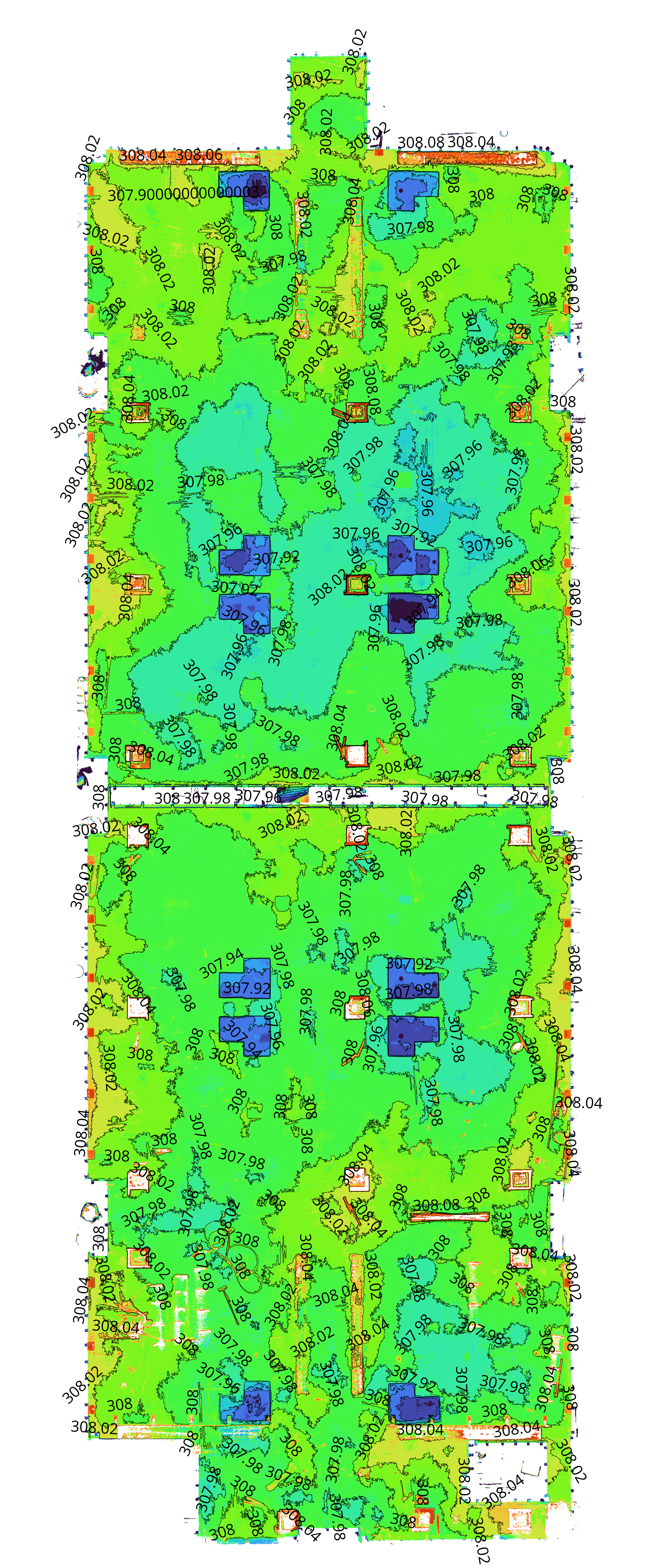 In addition to the "Conformance Map" the PDF Report also contains a topographical map of the slab profile that is color-coded to represent the absolute elevation of every location on the deck.